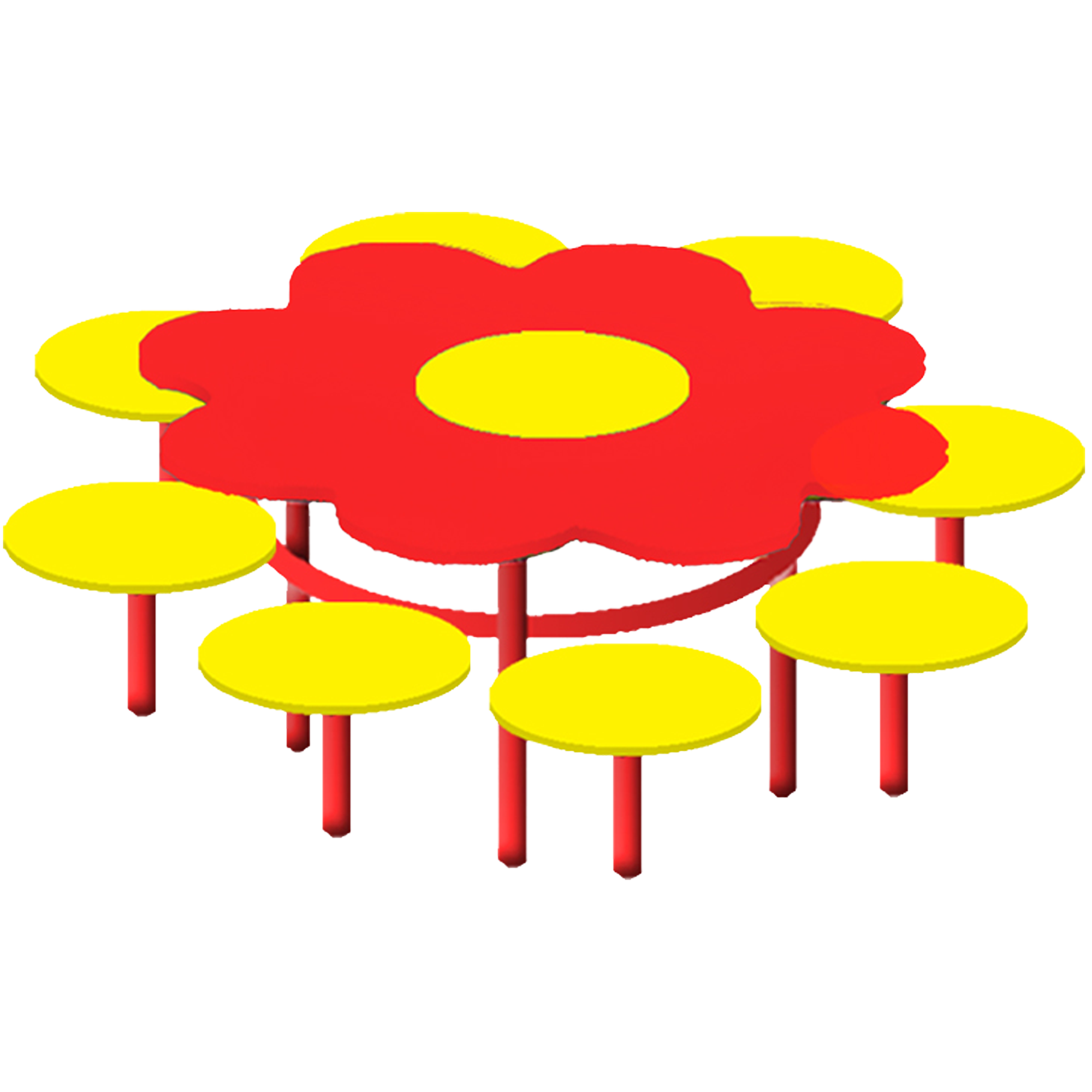 Габаритные размеры: столика D = 1200 мм, H = 600 мм; стульчиков D = 300 мм, H = 300 мм.
