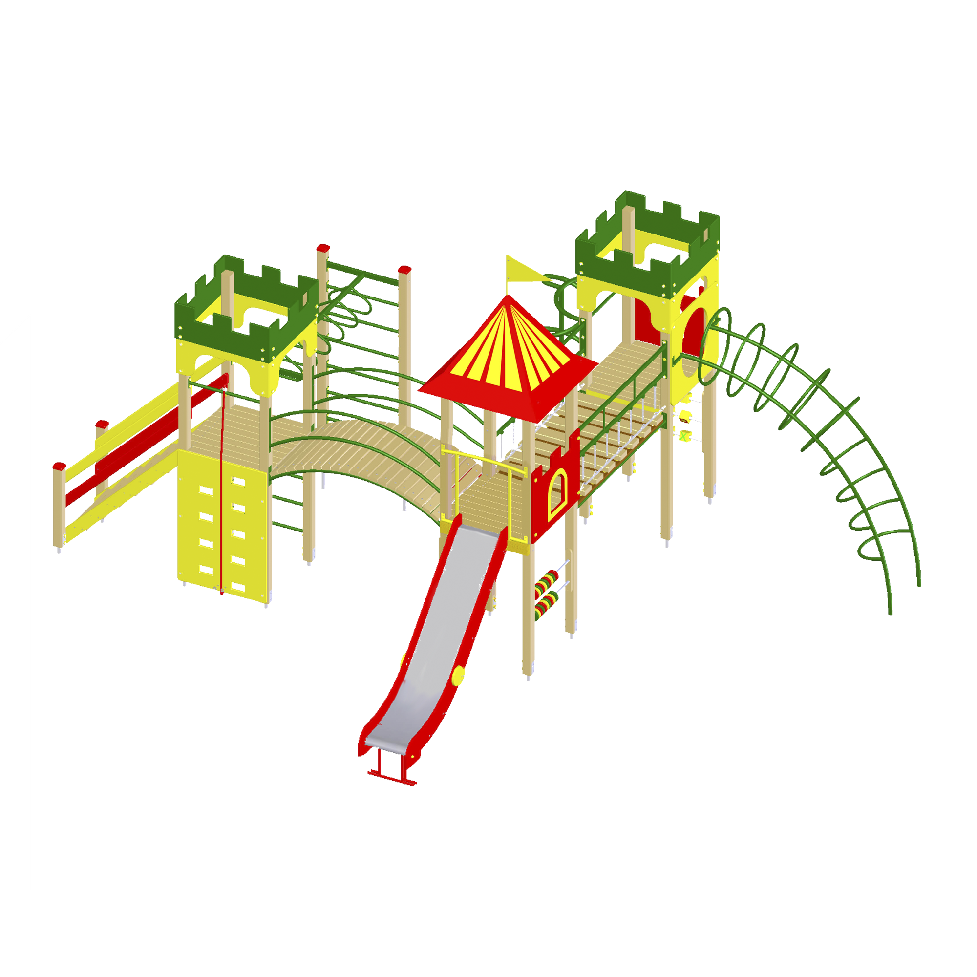Опорні стійки обладнання виготовлені з сухого дерева хвойних порід (брус клеєний 100х100мм), оснащуються металевим анкером, при необхідності пластиковим ковпаком.