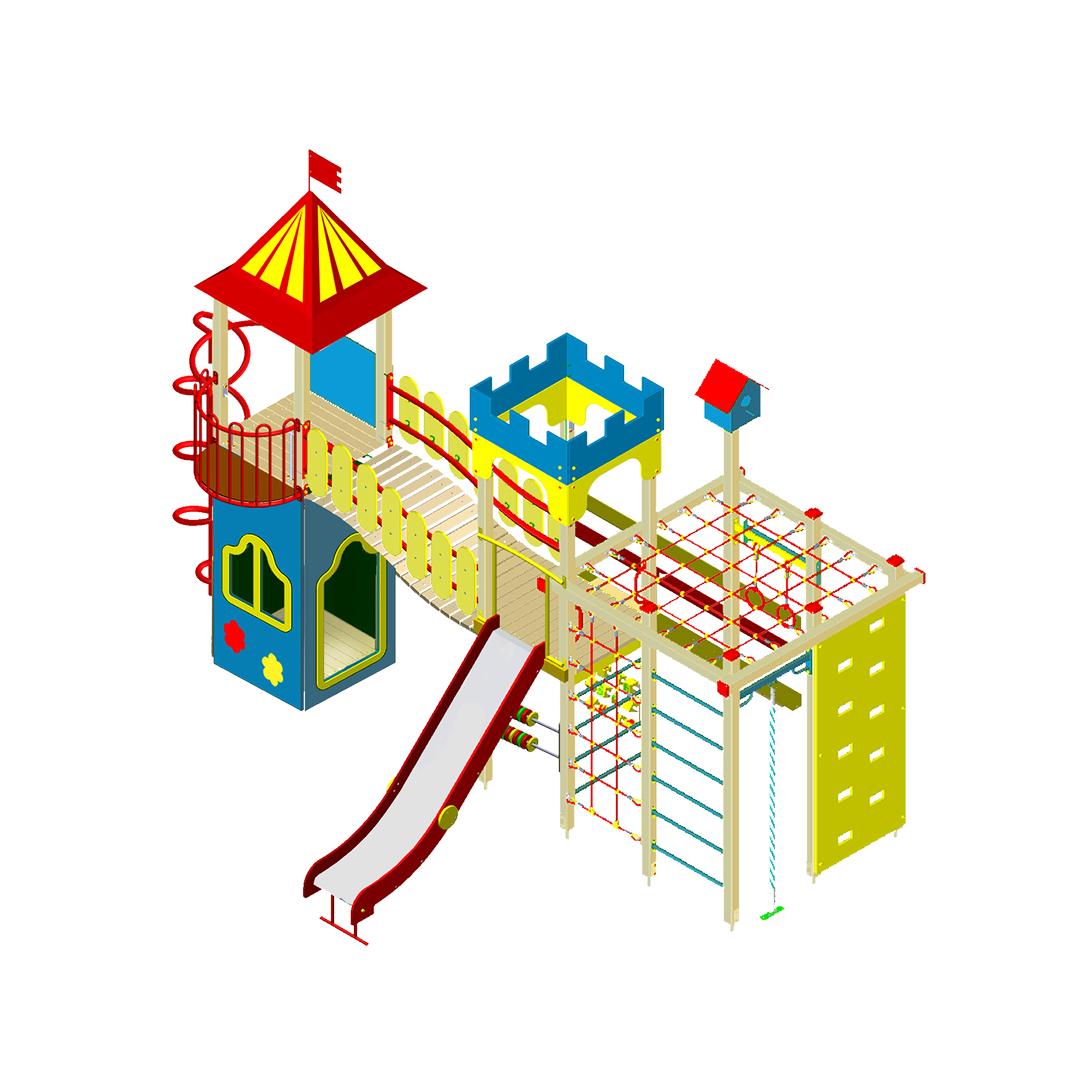 В элементах комплекса используются тросы с металлическими жилами внешний слой которых с акрила, внутри металлические жили и пластиковыми соединителями (европейский стандарт, ТUV сертификат)