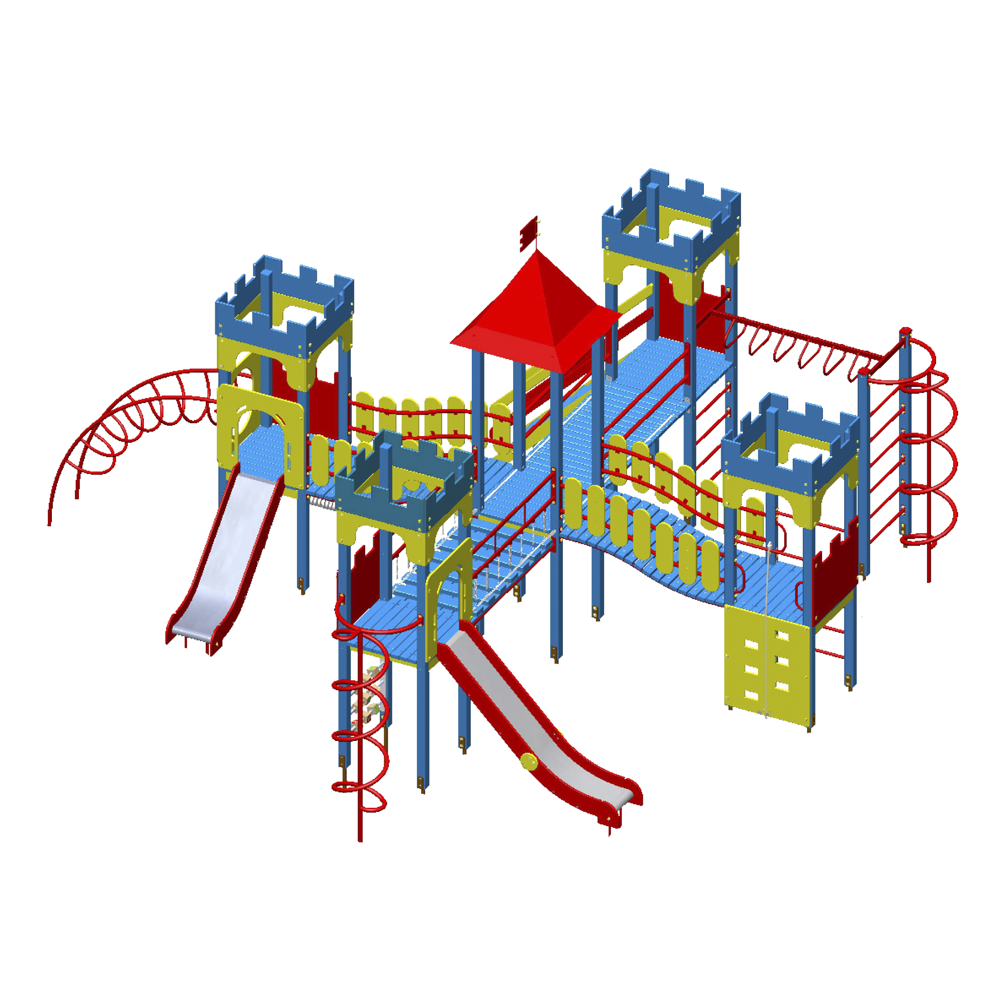 Борта гірок, основна обшивка комплексу та окремі елементи з вологостійкої фанери товщиною 21- 24 мм, покриття в 2-а шари ґрунту 2-а шари фарби промислової групи на водній основі (виробник Німеччина, Фінляндія) з спеціальною додатковою обробкою торців фанери.