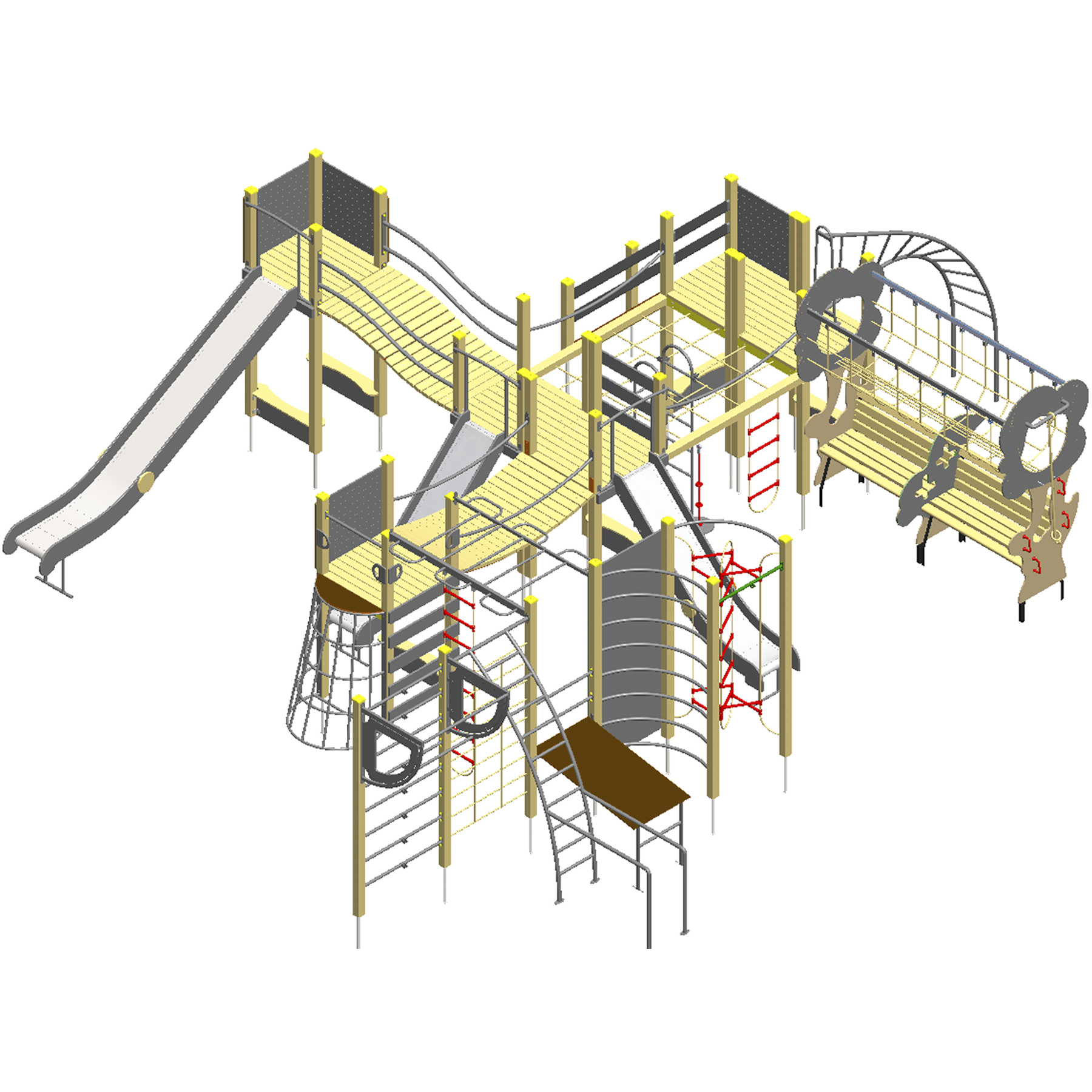 В элементах комплекса используются троса с металлическими жилами внешний слой которых из акрила, внутри металлические жилы и с пластиковыми соединениями (европейский стандарт, ТUV сертификат).