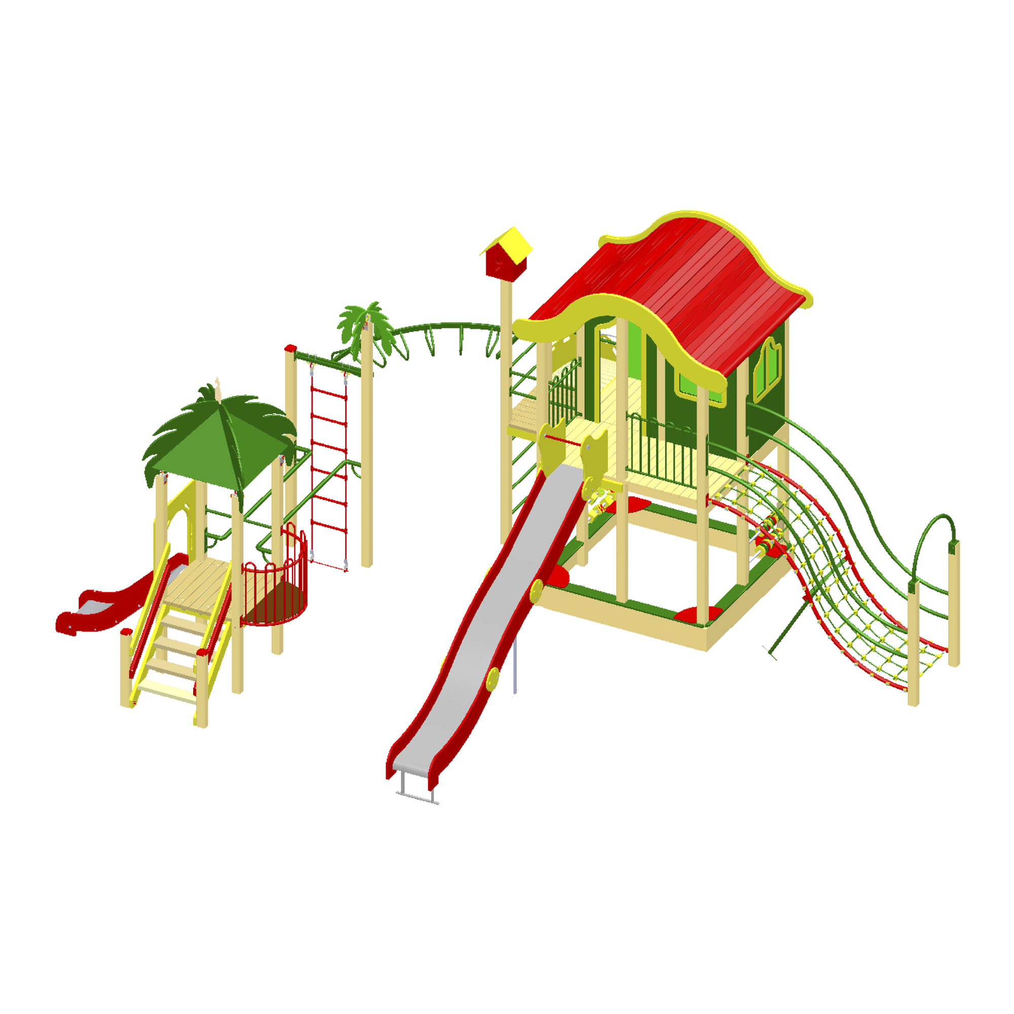 В элементах комплекса используются тросы с металлическими жилами внешний слой которых с акрила, внутри металлические жили и пластиковыми соединителями (европейский стандарт, ТUV сертификат).