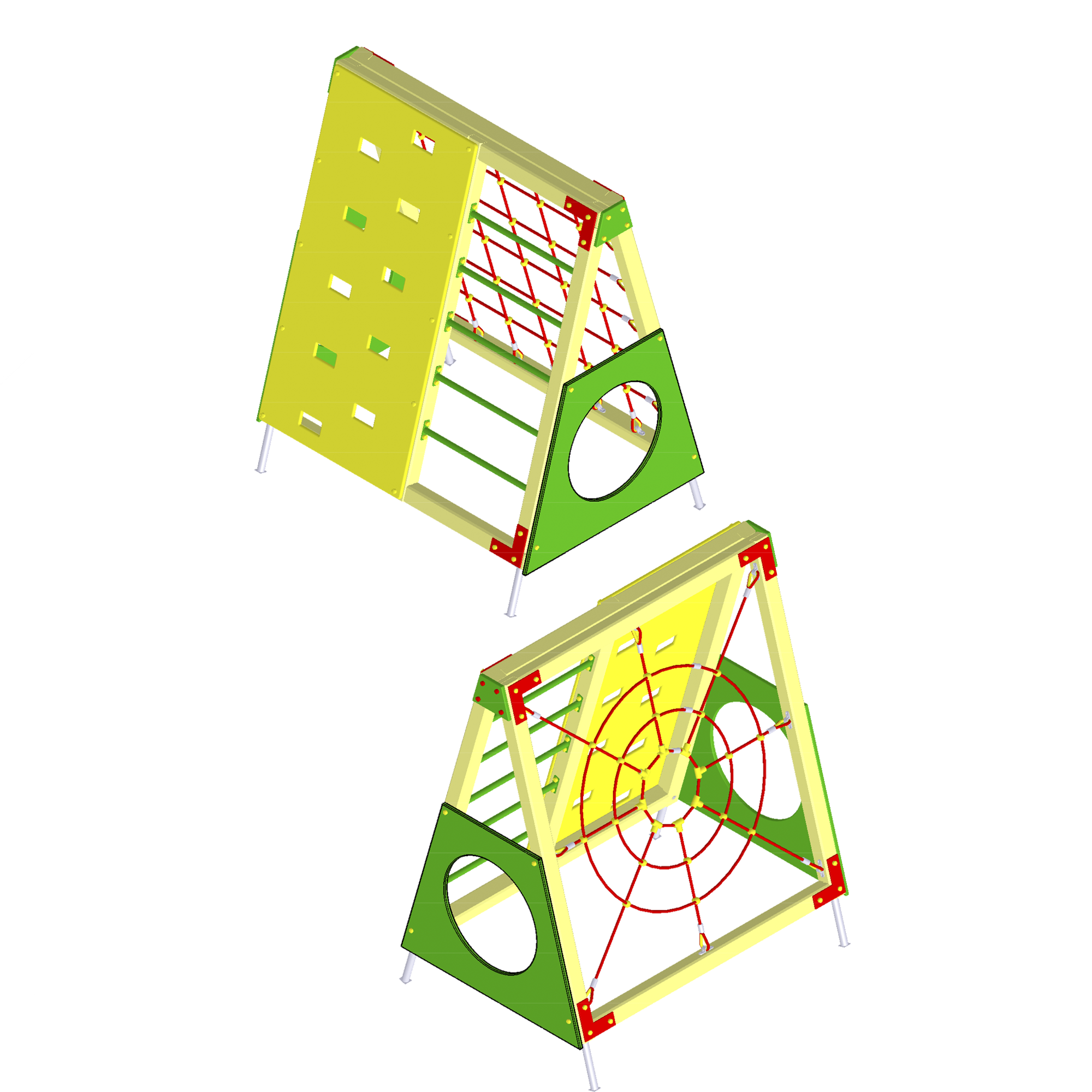 В елементах комплексу використовуються троси з металевими жилами, зовнішній шар яких з поліпропілену, та пластиковими з’єднувачами (европейський стандарт, ТUV сертифікат).