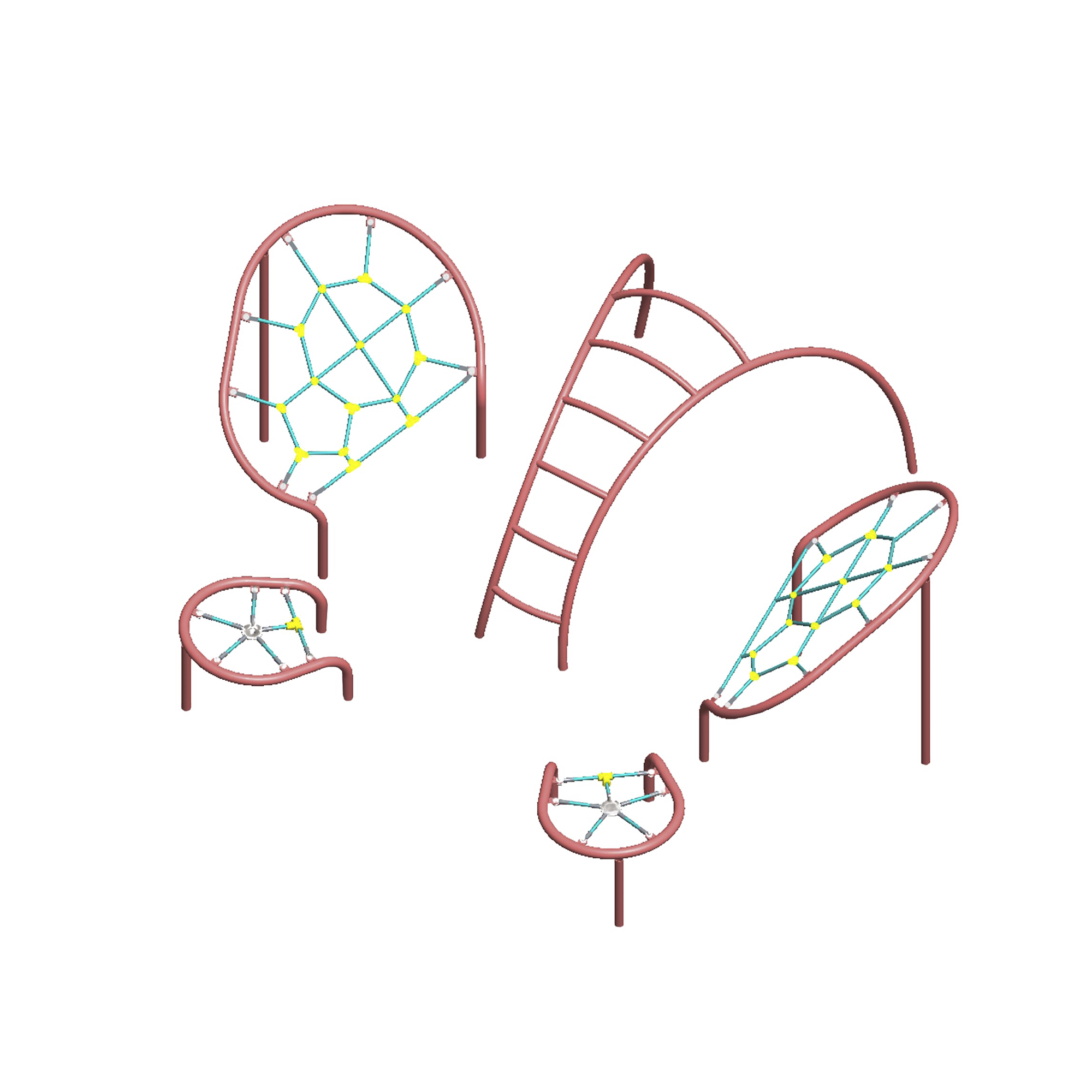 В элементах комплекса используются тросы с металлическими жилами внешний слой которых с акрила, внутри металлические жили и пластиковыми соединителями (европейский стандарт, ТUV сертификат).
