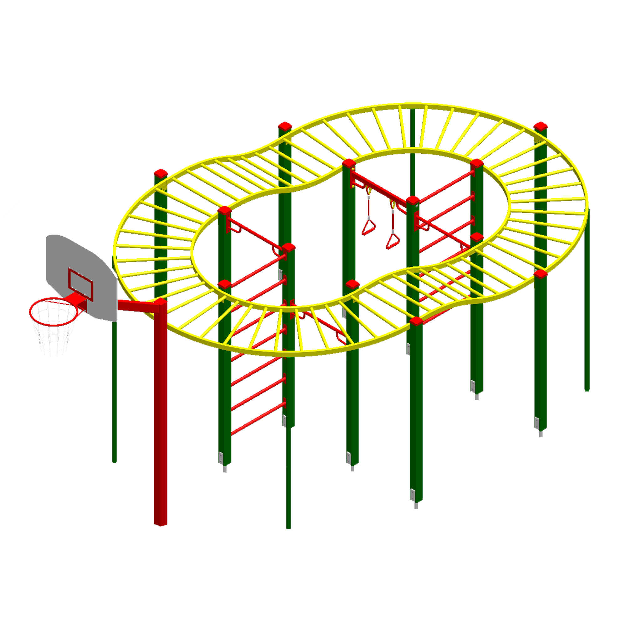 Гімнастично-ігровий комплекс “Рукохід по колу Хвиля з баскетбольним щитом” – багатофункціональний елемент розрахований для дітей з 7 років та підлітків.