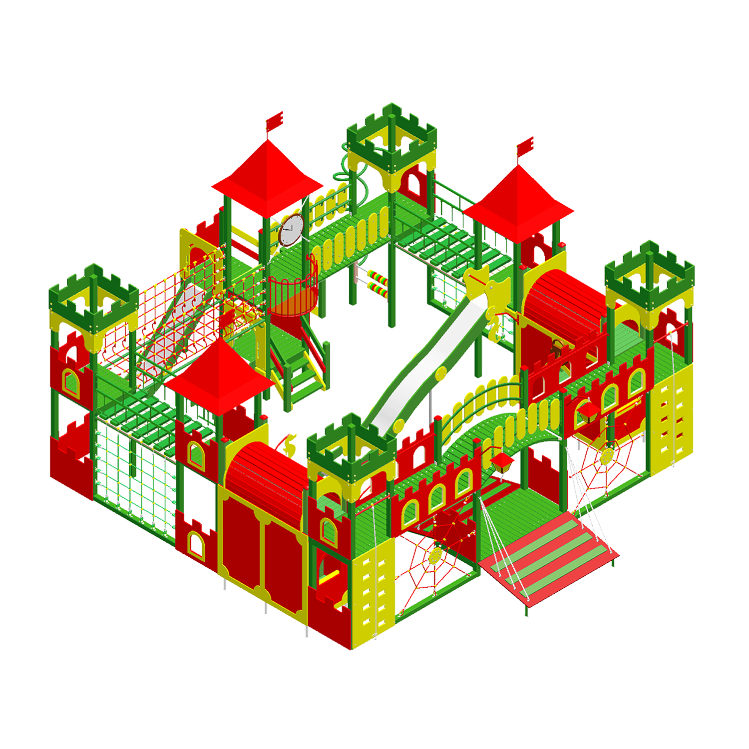 В елементах комплексу використовуються троси з металевими жилами зовнішній шар яких із акрилу, всередині металеві жили та пластиковими з’єднувачами (европейський стандарт, ТUV сертифікат).