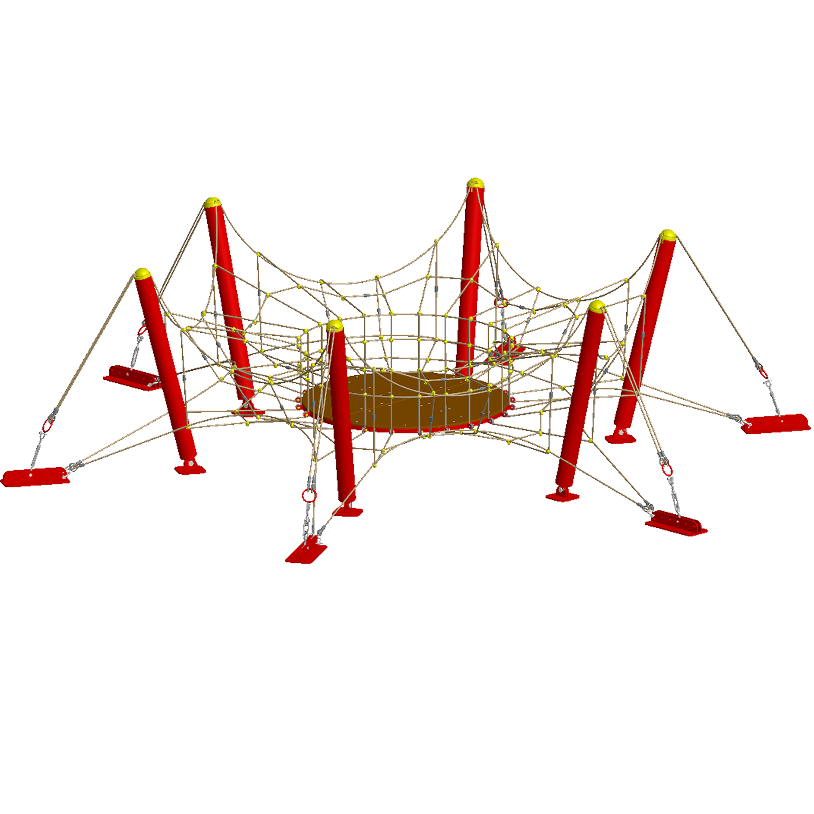 В елементах комплексу використовуються троси з металевими жилами зовнішній шар яких із акрилу, всередині металеві жили та пластиковими з’єднувачами (европейський стандарт, ТUV сертифікат).